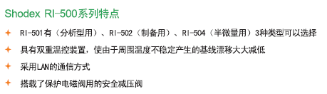 RI-501是對應于標準尺寸分析色譜的機種;RI-502是對應于制備型色譜的機種;RI-504是對應于半微量型色譜的機種。這些機器最大限度的抑制了峰的變寬現(xiàn)象,是最先進的RI檢測器。根據(jù)使用不同尺寸色譜柱的選擇不同的機種,能最大限度的發(fā)揮色譜柱的分析能力。請根據(jù)您的實際用途選擇。