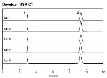 所有的Develosil系列色譜出均出自野村化學(xué)。因此,質(zhì)量控制有嚴(yán)格的要求,批次之間有著極高的重現(xiàn)性。