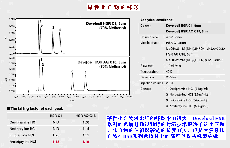 HILIC模式的柱子已經(jīng)有很多對極性化合物有良好保留的案例,但是,請嘗試一下DevelosilHSR系列色譜柱,你會發(fā)現(xiàn)這一系列柱子優(yōu)秀的的耐用性以及作為反相柱的便捷性。