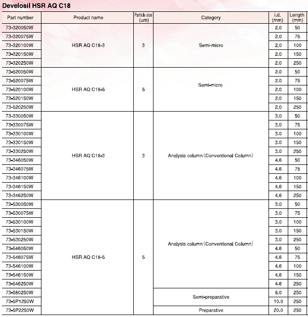 HILIC模式的柱子,但是,我們可能更傾向于在分析的時候用類似的反相柱。因此,Develosil HSR AQ C18C1柱,應(yīng)運而生!