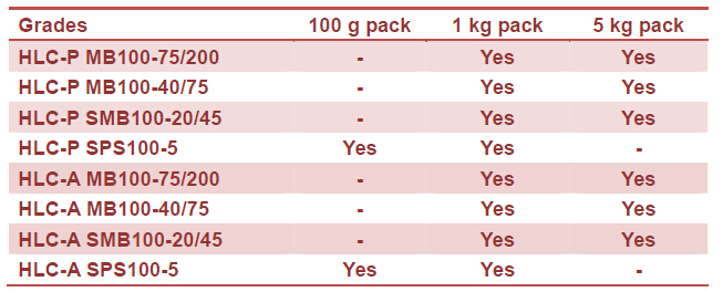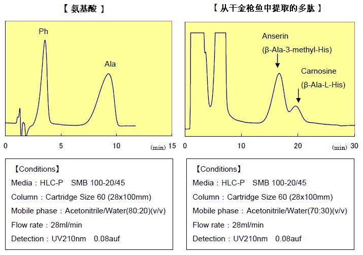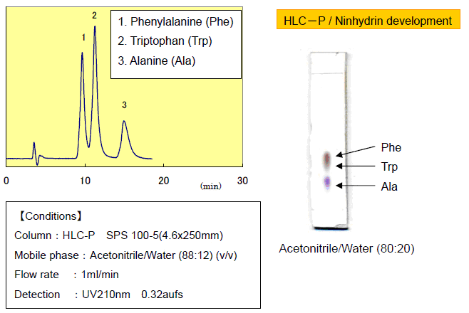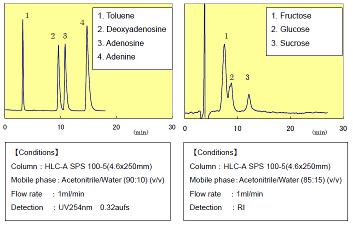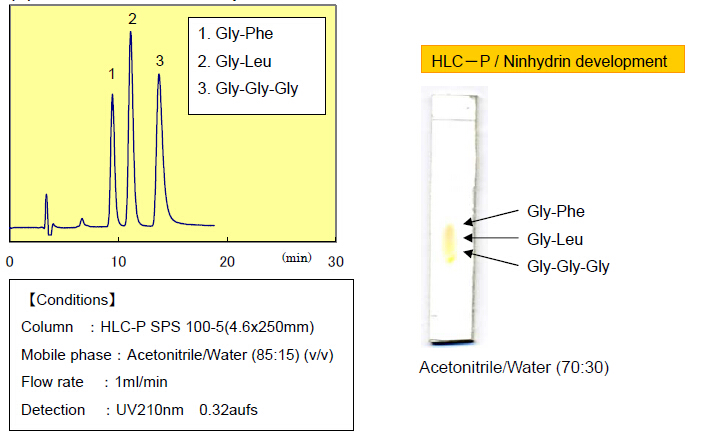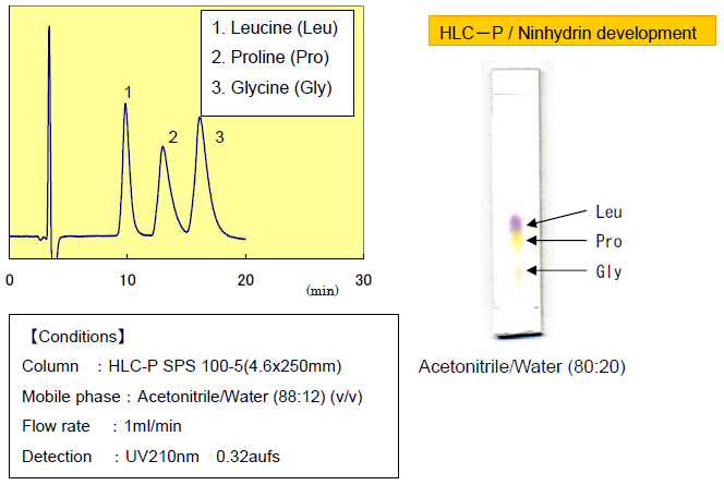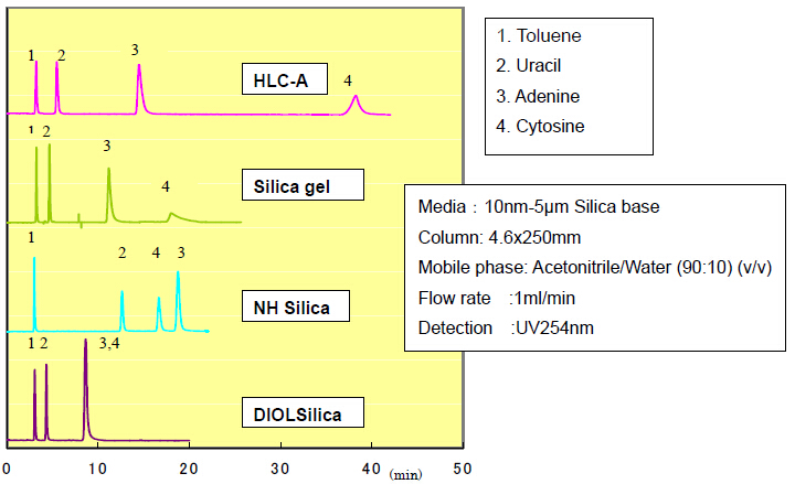 ????因此,對于極性化合物的洗脫,HILIC模式和反相模式是互補的。富士硅化學有限公司開發(fā)了兩款HILIC模式的填料,命名為“HLC”硅膠。兩種HLC硅膠都含有兩性的官能團,共價鍵合在硅膠表面?!?/span>HLC-A”用于分離純化有機酸、核酸和糖類;“HLC-P”用于分離氨基酸、多肽。