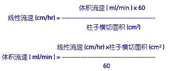 對(duì)體積不同的柱子來說,體積流速不能直接用作比較,一般都換算成線性流速,再做比較: