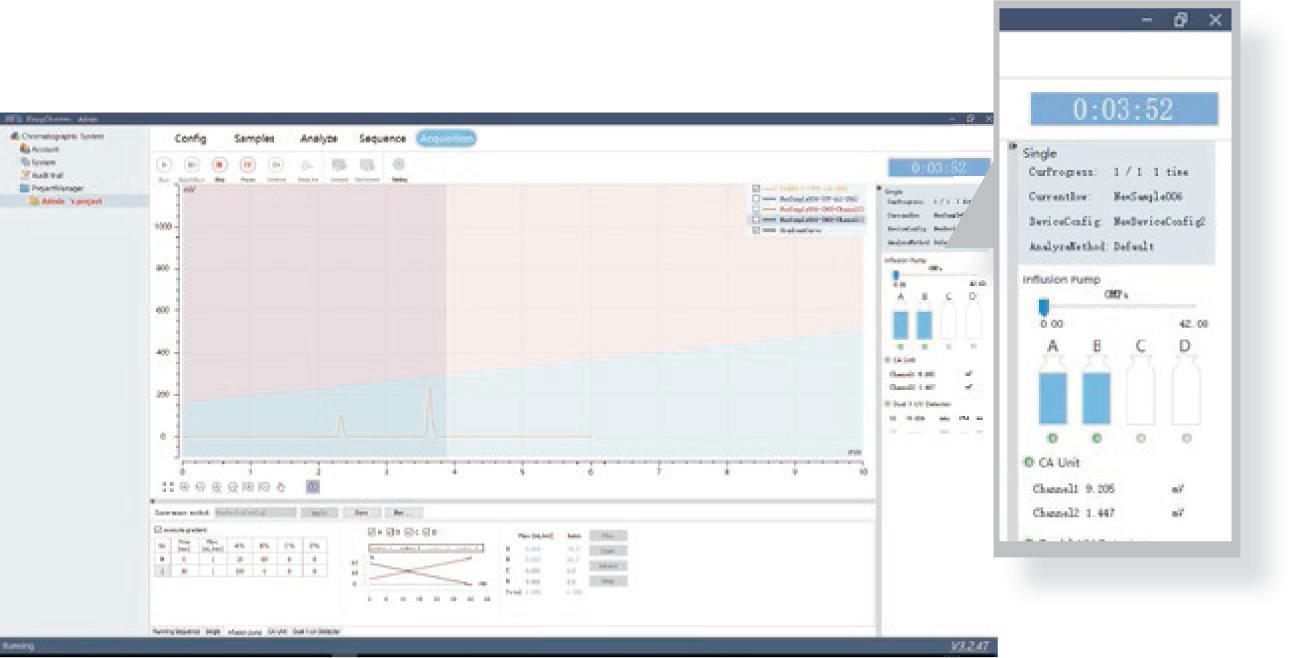 HP-3000色譜工作站是專門為制備、純化的客戶而開發(fā)的,很好的將儀器控制和譜圖處理進行了融合,整體界面簡潔清楚,一目了然。針對制備色譜的要求,去除了部分繁瑣的譜圖處理功能使之更適合與制備。