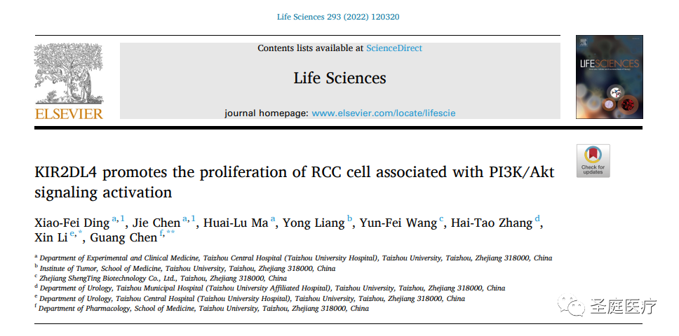 近日,圣庭醫療與臺州學院附屬臺州中心醫院、臺州學院醫學院腫瘤研究所、臺州學院附屬臺州市醫院、臺州學院醫學院藥理學系的聯合研究發現,殺傷細胞免疫球蛋白樣受體2DL4(KIR2DL4)的敲低或過度表達可以分別抑制或促進腎細胞癌(RCC)增殖。
