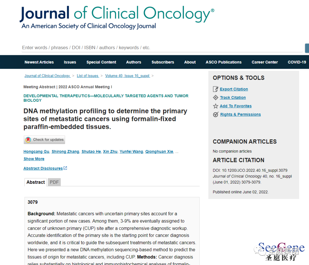 2022 ASCO|圣庭醫療腫瘤甲基化研究成果亮相ASCO
