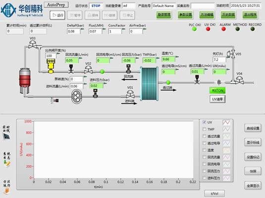 ??? 華創(chuàng)精科生產(chǎn)的ATFF 系列切向流過濾系統(tǒng),采用符合cGMP 理念要求的設(shè)計及FDA 要求的材質(zhì),可自動進行水通量(NWP)測試,并預(yù)留膜包完整性測試接口。超濾過程中可在線監(jiān)測多個參數(shù),能夠自動記錄并存儲實驗過程,并可生成相應(yīng)pdf報告。在控制軟件上可通過手動或預(yù)設(shè)定程序自動進行超濾操作。