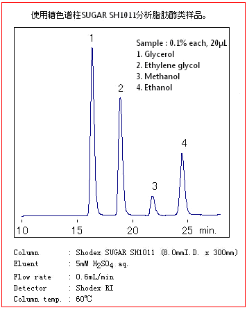 SUGAR SH1011色譜柱是以聚苯乙烯-二乙烯基苯為基質(zhì)的,是對糖和有機(jī)酸同時分析的色譜柱。中性糖用尺寸排阻原理進(jìn)行分離,有機(jī)酸是用離子排阻法進(jìn)行分離的。主要適用于糖醛酸和醛糖酸的分析。