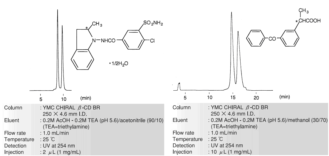 YMC CHIRAL CD BR 系列柱由鍵合有α-溴化環(huán)糊精(六環(huán))、β-溴化環(huán)糊精(七環(huán))和γ-溴化環(huán)糊精(八環(huán))的3種光學(xué)異構(gòu)體的固定相構(gòu)成。根據(jù)3種類型分離模式的不同,擴(kuò)大了化合物的分離范圍。雙重作用機(jī)制,使其與ODS具有不同的選擇性。對(duì)ODS分離困難的構(gòu)造異構(gòu)的分離有效。
